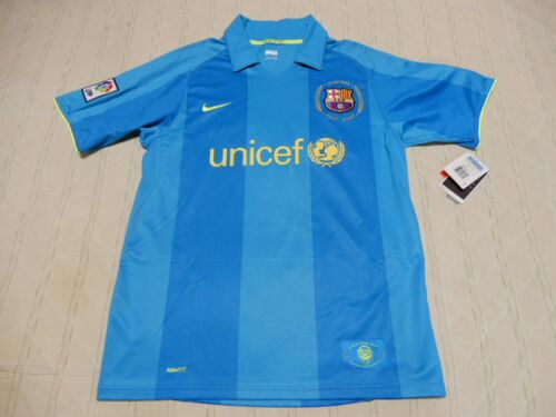 2007-2008シーズンに使用されたアウェイ用ユニフォームです。アルゼンチン代表のリオネル・メッシ選手のネームとナンバー入りとなります。現在では10番以外のイメージがメッシ選手。背番号19を付けた最後のシーズンとなりました。 サイズ表記部分はラバー圧…