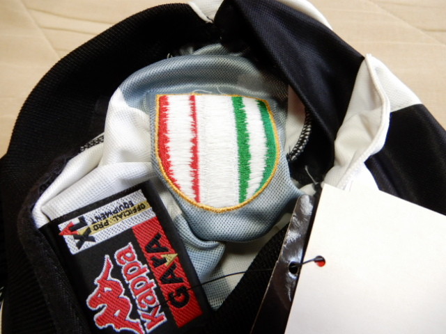 1997-1998シーズンに使用されたホーム用ユニフォームです。チャンピオンズリーグ仕様となります。元イタリア代表のマルク・ユリアーノ(イタリア語の発音だとイウリアーノですね)選手に支給されたユニフォームです。市販品との違いは下記となります。